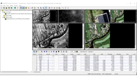 Met software zoals ERDAS IMAGINE identificeert Harald overeenkomstige punten, zoals de hoekpunten van huizen, en positioneert hij de beelden nauwkeurig (afbeelding 04). Dat is gemakkelijker dan je denk. De computer kijkt namelijk mee, zodra Harald meer dan 4 punten heeft aangegeven “helpt’ de computer mee met zoeken naar overeenkomstige punten (afbeelding 05). Hierdoor wordt het mogelijk om de historische situatie naadloos over de huidige kaart te leggen.